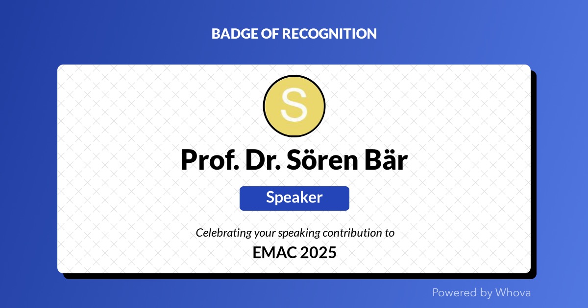 Es war mir eine Ehre, auf der diesjährigen 54. Jahreskonferenz der European Marketing Academy (EMAC) an der ESIC Business & Marketing School in Madrid (Pozuelo de Alarcón) einen Vortrag zum Thema „Wie man Mythen auf die Marke eines Fußballvereins überträgt“ halten zu dürfen.